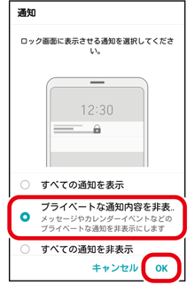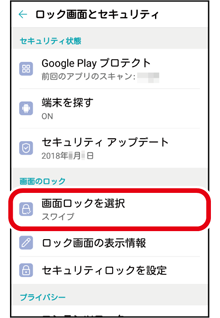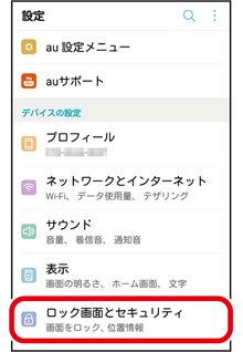 ロックの設定をしていると画面が消えたときロックがかかります。ロックをかけることで、他人に使われないようにしたり、かばんの中での誤操作を防いだりします。セキュリティの種類には「パターン」「PIN」「パスワード」の3種類があります。