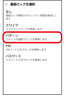 パターンよりもセキュリティを強くしたい場合は、「PIN」または「パスワード」を設定してロックしてください。