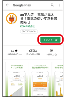 ここではPlay ストアから「auでんき」をダウンロードしてインストールする手順を説明しています。事前にGoogleアカウントの設定が必要です(▶Google™アカウントを設定する)。