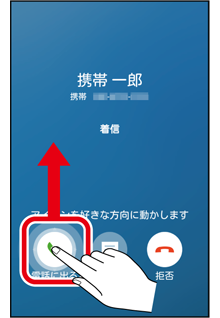 かかってきた電話に出るには、を輪の外側までスワイプ