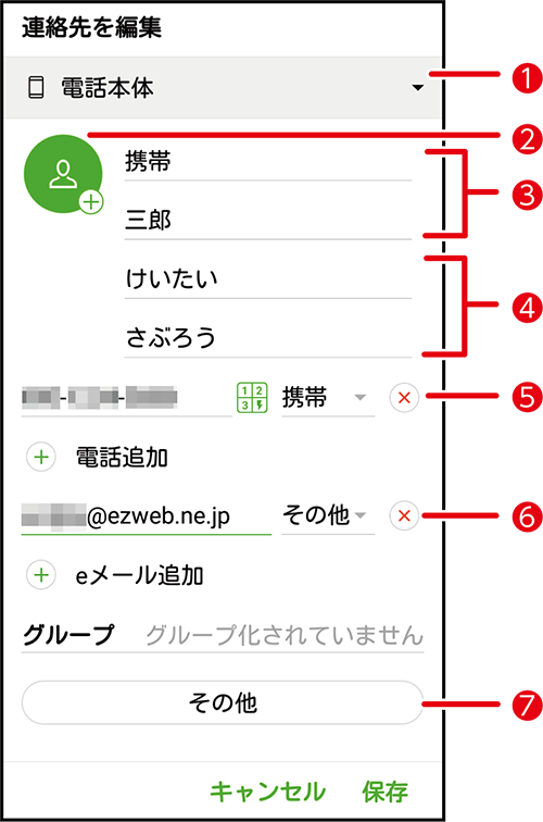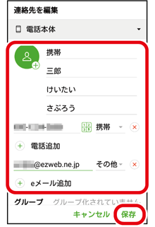 名前、電話番号など必要な項目を入力し、「保存」をタップ