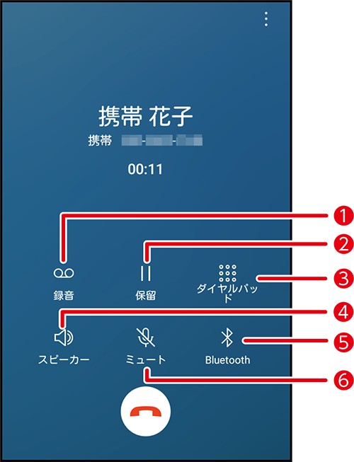スピーカー:ハンズフリーで通話できます。タップするとスピーカーから相手の声が聞こえるようになります。再度タップすると元に戻ります。
