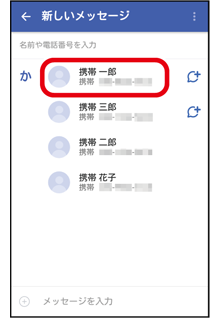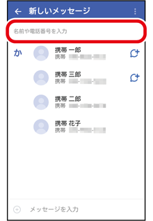 宛先入力欄をタップし、電話番号や名前を入力します。