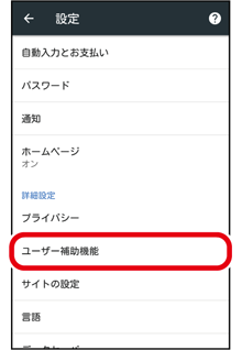 画面を上にスライドし、「ユーザー補助機能」をタップ