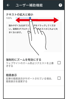 「テキストの拡大と縮小」のバーを左右にドラッグ