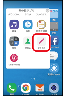 フォルダを上にスライドし、「Qメモ+」をタップ
