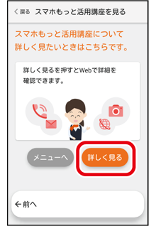スマホもっと活用講座の説明が表示されるので、「次へ」をタップし、「詳しく見る」をタップ