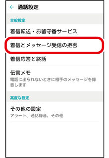 「着信とメッセージ受信の拒否」をタップ