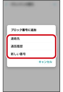 連絡先や通話履歴から電話番号を選択するか、新しい番号を入力して登録