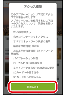 利用規約やプッシュ通知の受信などの確認画面が表示された場合は、画面の指示に従って操作してください。