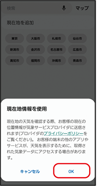 現在地の天気が設定され、天気予報が表示されます