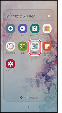 ホーム画面を左にスライドして、「よくつかうフォルダ」をタップし、「SATCH」をタップ