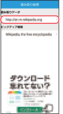 「読み取りデータ」をタップし、表示されたURLをタップ