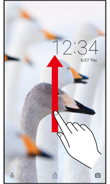 ロック画面が表示されますので、画面を上方向にスワイプ