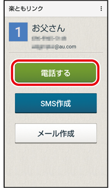 「SMS作成」/「メール作成」をタップすると宛先が入力された状態のSMS/メール作成画面を表示できます。