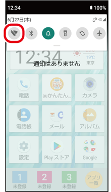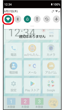 「Wi-Fi®を使う」で1度設定した内容は保存され、以降は、お知らせパネルから接続のON/OFFを切り替えられます。