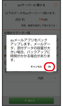 auサーバーに本製品内のデータをまとめてバックアップすることができます。