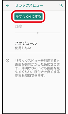 リラックスビューが設定されると、画面が少し黄色がかった表示になります。