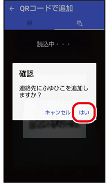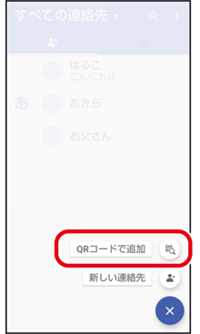 +メッセージ利用者同士であれば、+メッセージ専用のQRコードを読み込むことで、連絡先(電話帳)に登録できます。