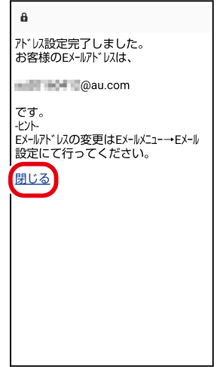 auメールアドレスを確認し、「閉じる」をタップ
