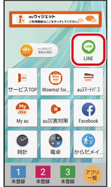 ホーム画面を左にスライドし、「LINE」をタップ