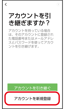すでにアカウントをお持ちの場合は、「アカウントを引き継ぐ」をタップし、画面の指示に従って操作します。