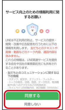 上記のような画面が表示された場合は、内容を確認し、「同意する」または「同意しない」をタップ