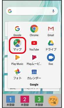 ホーム画面で「Google」をタップし、「マップ」をタップ
