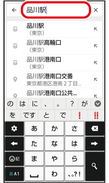 入力欄に行きたい場所の名前、住所などを入力し、候補から目的地を選択