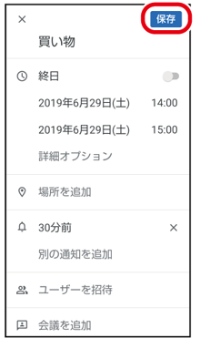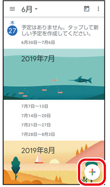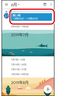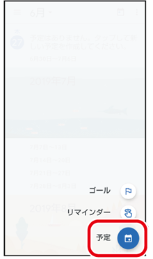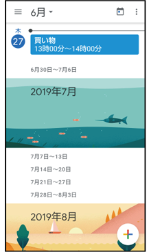 カレンダーはスケジュール、日ごと、月ごとなどに表示を切り替えられます。