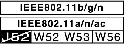 本製品の無線LAN(Wi-Fi®)機能は5GHz帯を使用します。電波法により5.2GHz帯および5.3GHz帯の屋外利用は禁止されております。