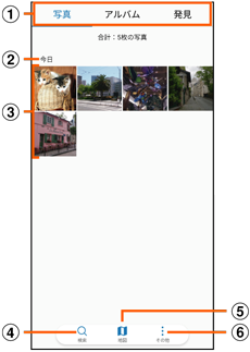 データ一覧画面/アルバム一覧画面/発見一覧画面の切り替え