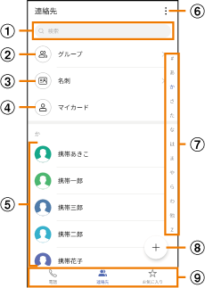 表示設定や連絡先の整理、インポート/エクスポート、名刺の読み取りなどができます。