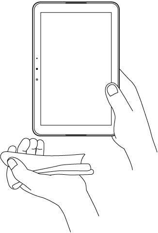 繊維くずの出ない乾いた清潔な布などに本製品を軽く押し当て、 スピーカー・マイク・外部接続端子部・イヤホンマイク端子部・音量ボタン・カスタマイズボタン周辺などの隙間に入った水分を拭き取ってください。