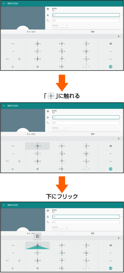 」 をタップするだけで入力でき、 「お」 を入力する場合は 「