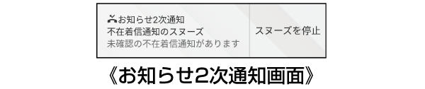 未確認の不在着信があった場合に、 スヌーズで通知されます (お知らせ2次通知)。 詳細は 「不在着信通知を設定する」 をご参照ください。