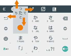 キーを上下左右にフリックすることで、各行の入力したい文字を入力できます。
