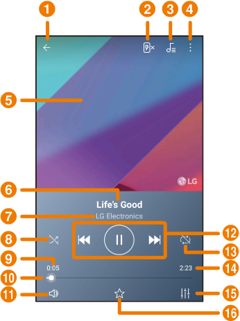 再生される音楽にあわせてフラッシュが点滅します。 一部の高音質音源はフラッシュライトが動作しない場合があります。 イヤホン、スピーカーなどに接続中は、フラッシュライトを使用できません。