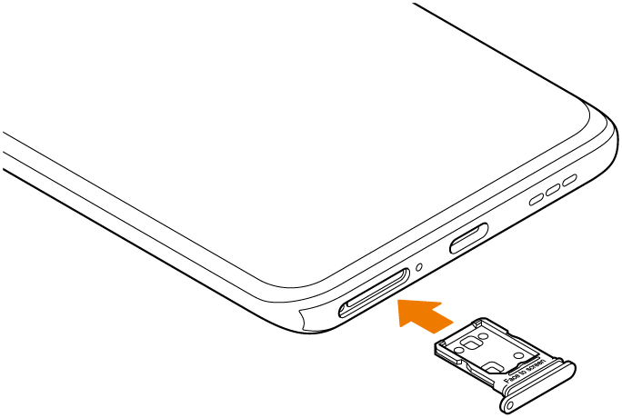 図の向きでau ICカードスロットの奥までまっすぐ差し込んでください。