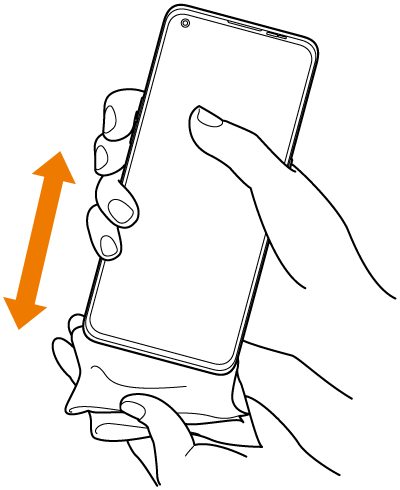 トレイ取り出し用の穴、レシーバー/スピーカー、メインマイク、サブマイク、外部接続端子、音量ボタン(上/下)、電源ボタン/スクリーンロックボタンなどの隙間に溜まった水は、乾いた清潔な布などに本製品を20回程度振るようにして押し当て、確実に拭き取ってください。