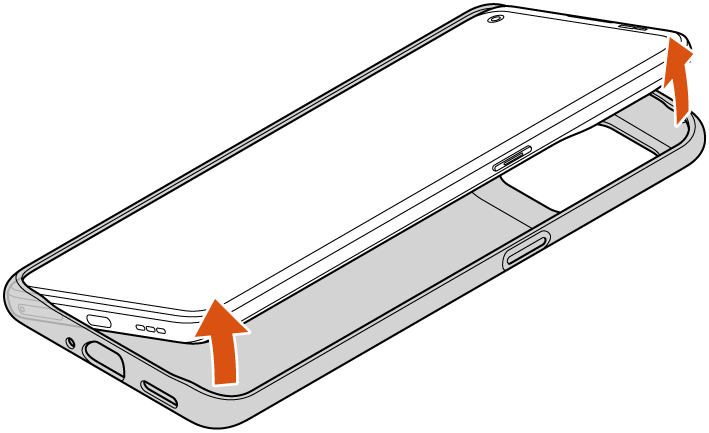 保護ケース(試供品)の角に指をかけ、押すようにして保護ケース(試供品)から本製品を取り外す