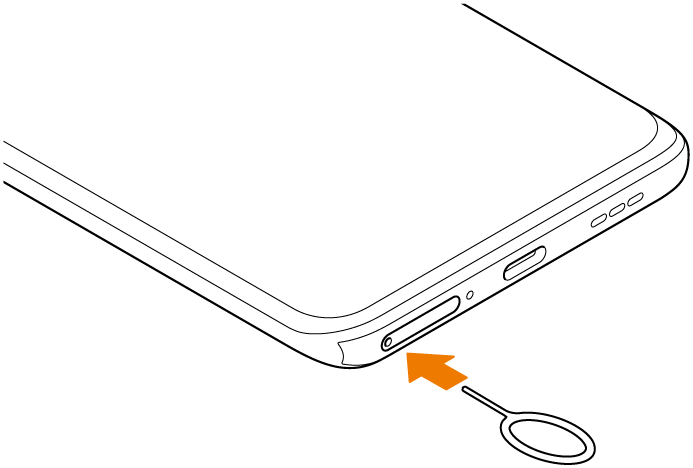SIM取出し用ピン(試供品)の先端をトレイ取り出し用の穴にまっすぐ差し込む