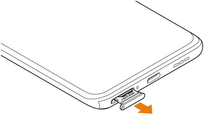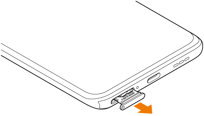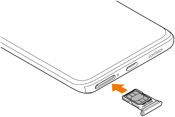 図の向きでau ICカードスロットの奥までau ICカードトレイをまっすぐ差し込む