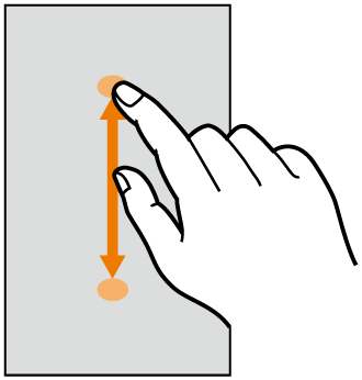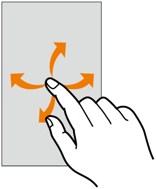 画面を指ですばやく上下左右にはらうように操作します。 最初はゆっくりと、最後は軽くはらうように指を動かしてください。 |