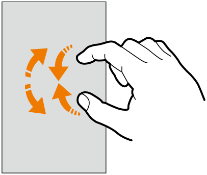 ピンチ 2本の指で画面に触れたまま指を開いたり(ピンチアウト)、閉じたり(ピンチイン)します。 | ドラッグ 項目やアイコンを移動するときなど、画面に指を軽く触れたまま目的の位置までなぞります。 |