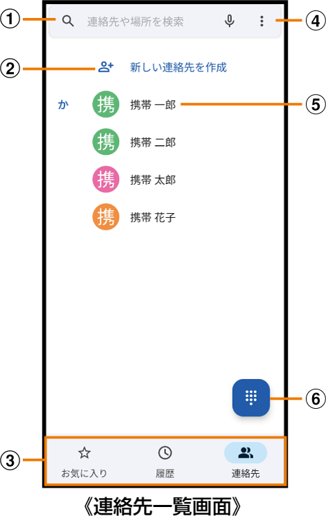 登録した連絡先が表示されます。タップすると、連絡先詳細画面が表示されます。