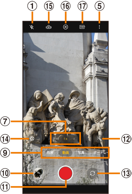 画面下部のカメラモードを選択