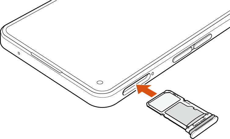 図の向きでSIMカード/microSDメモリカードスロットの奥までまっすぐ差し込んでください。
