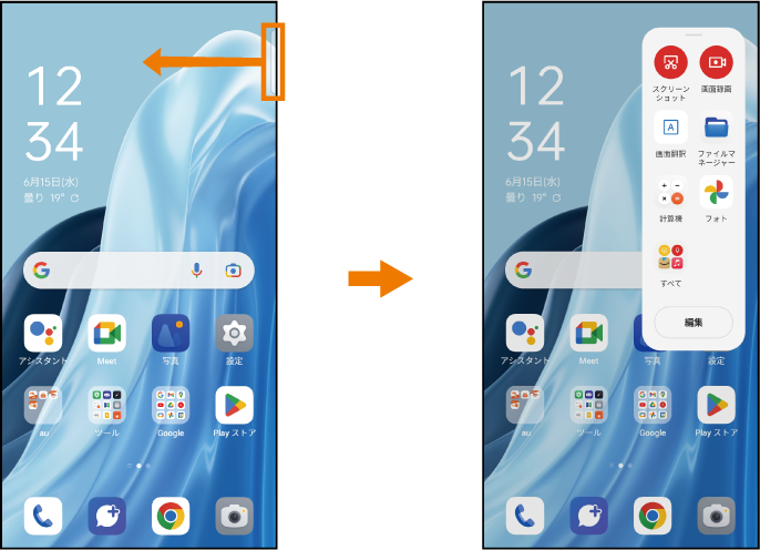 スクリーンショットや画面録画などのツールを利用したり、アプリを起動したりできます。