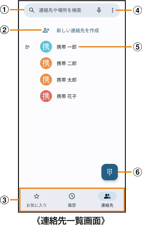 登録した連絡先が表示されます。タップすると、連絡先詳細画面が表示されます。